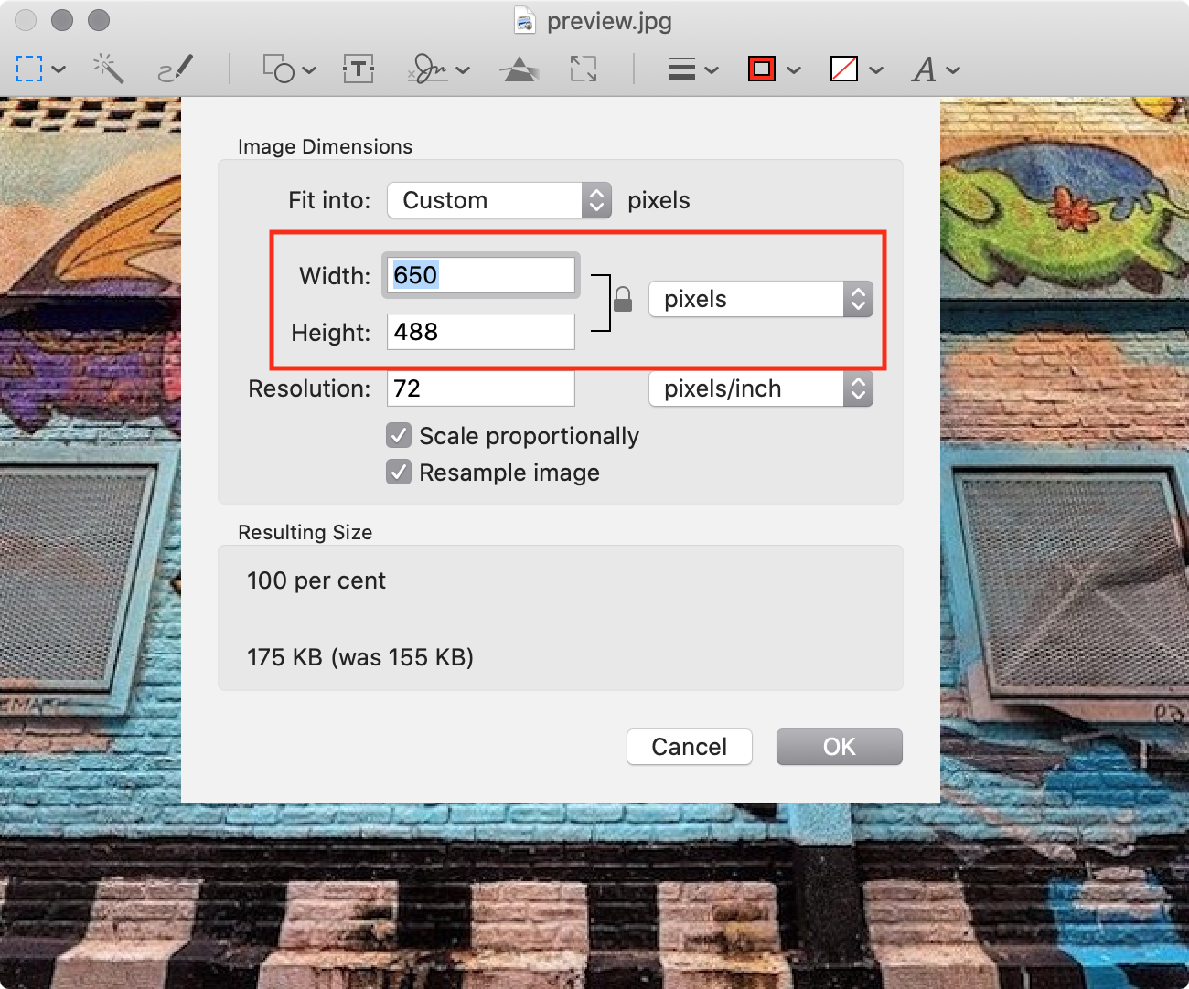 9. Open the local version of the preview.jpg file in Preview and set the size to 650px (figure #11)