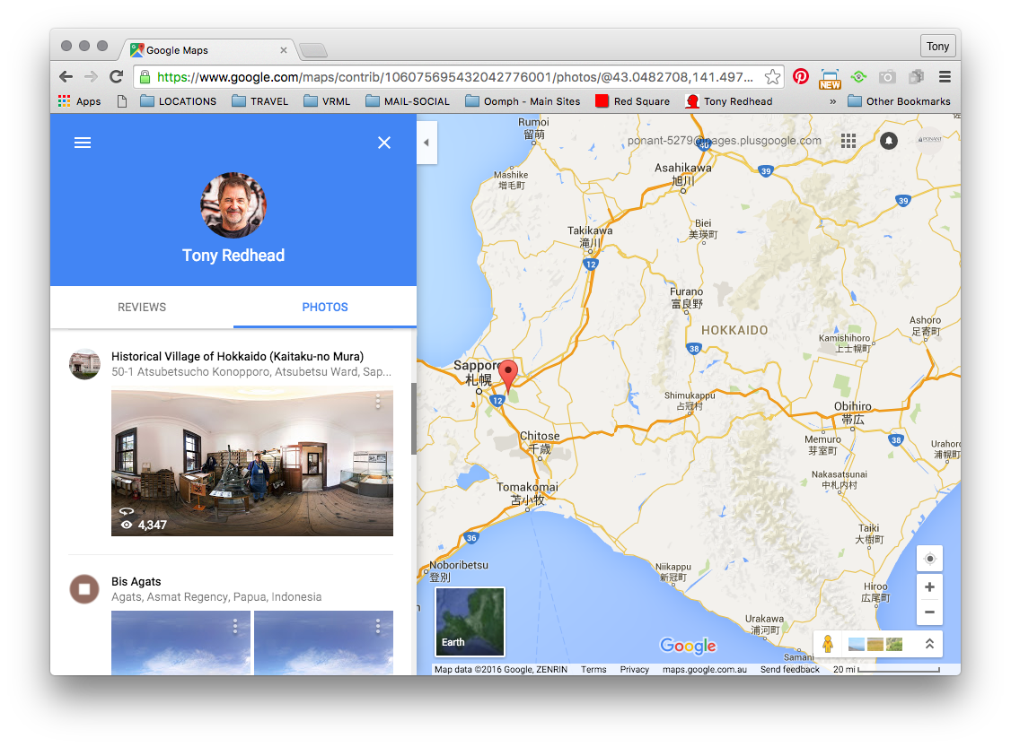 1. Start Google Maps and open your Contributions panel and scroll down to the photosphere you want use. In this case it's the Historical Village of Hokkadio.