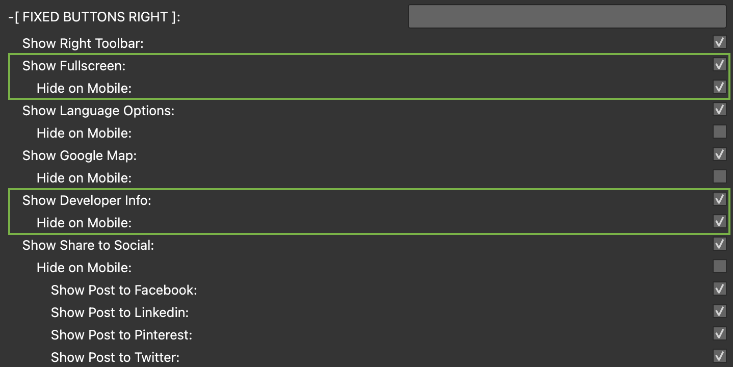 To help in organising the mobile view I’ve added a subset of checkboxes “Hide on Mobile” for each of the Left and Right buttons that when checked hide the buttons on mobile but not Desktop or iPad.