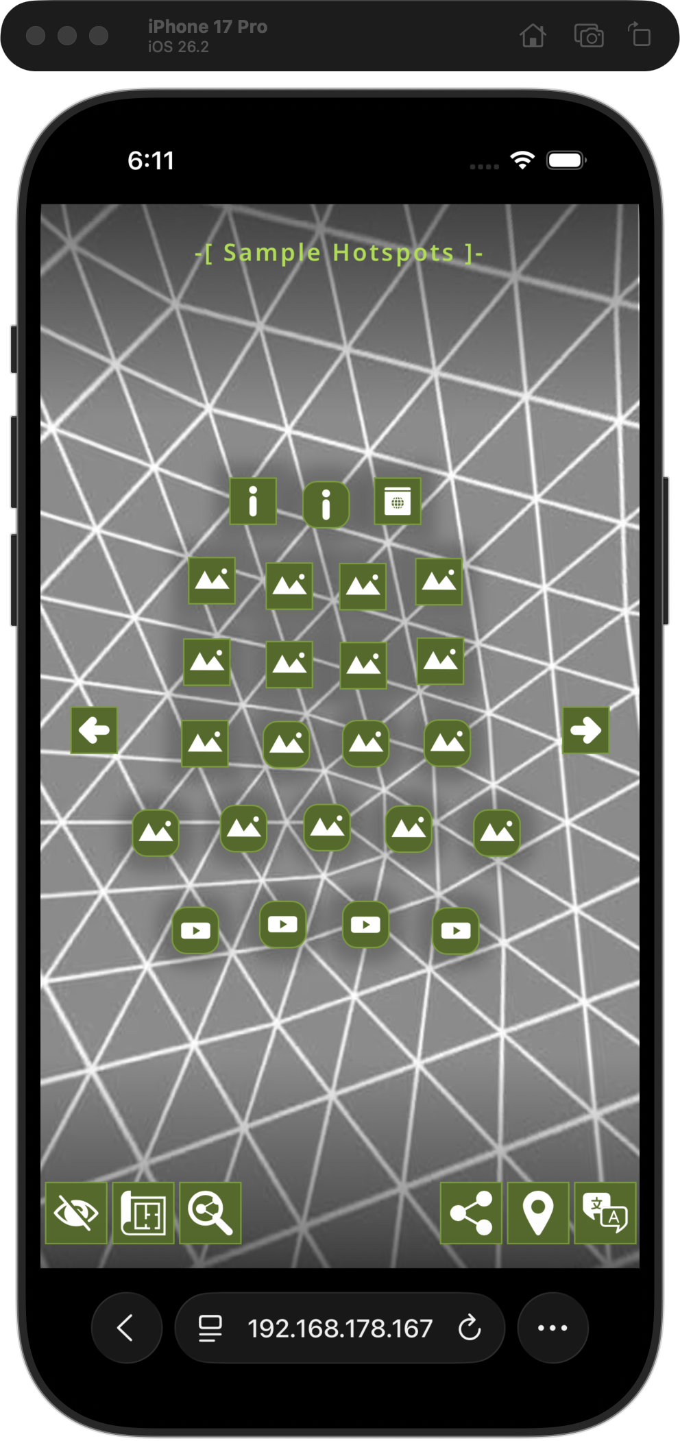 Showing this number of buttons on the Desktop or iPad is fine however on a mobile device (in portrait mode) the room is much more limited. To accomodate a smaller subset of buttons each button can selectively be “hidden” on mobile. For example Fullscreen is not really an option on mobile so it can be shown on desktop but not mobile.