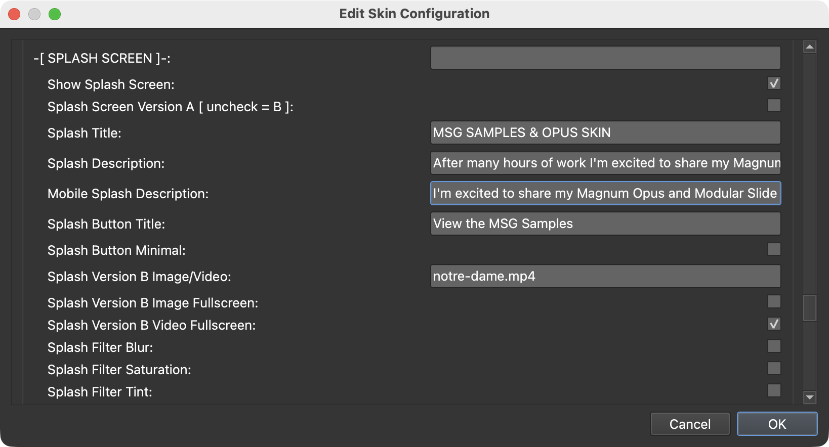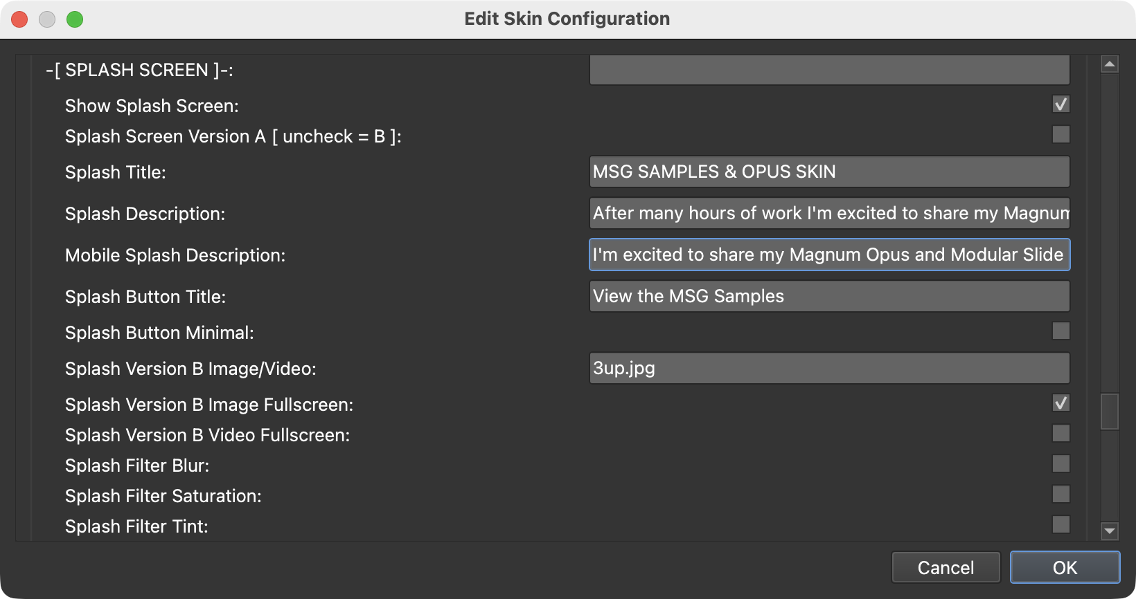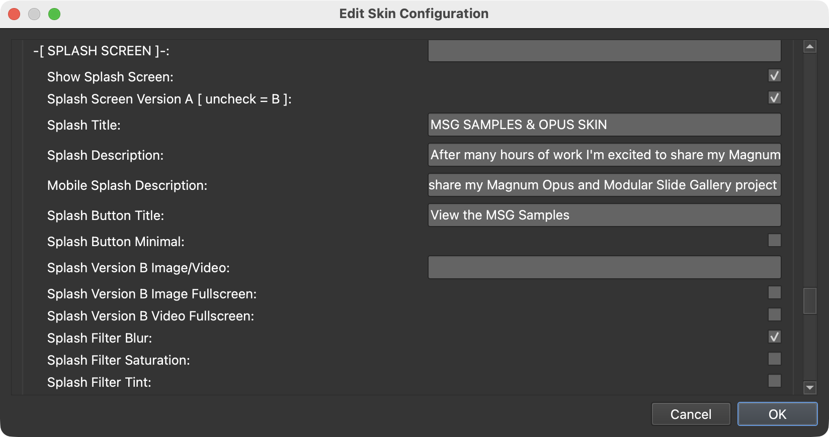 Version B: Fullscreen Image Edit Skin Configuration Splash Screen settings