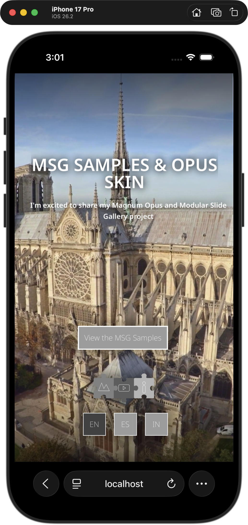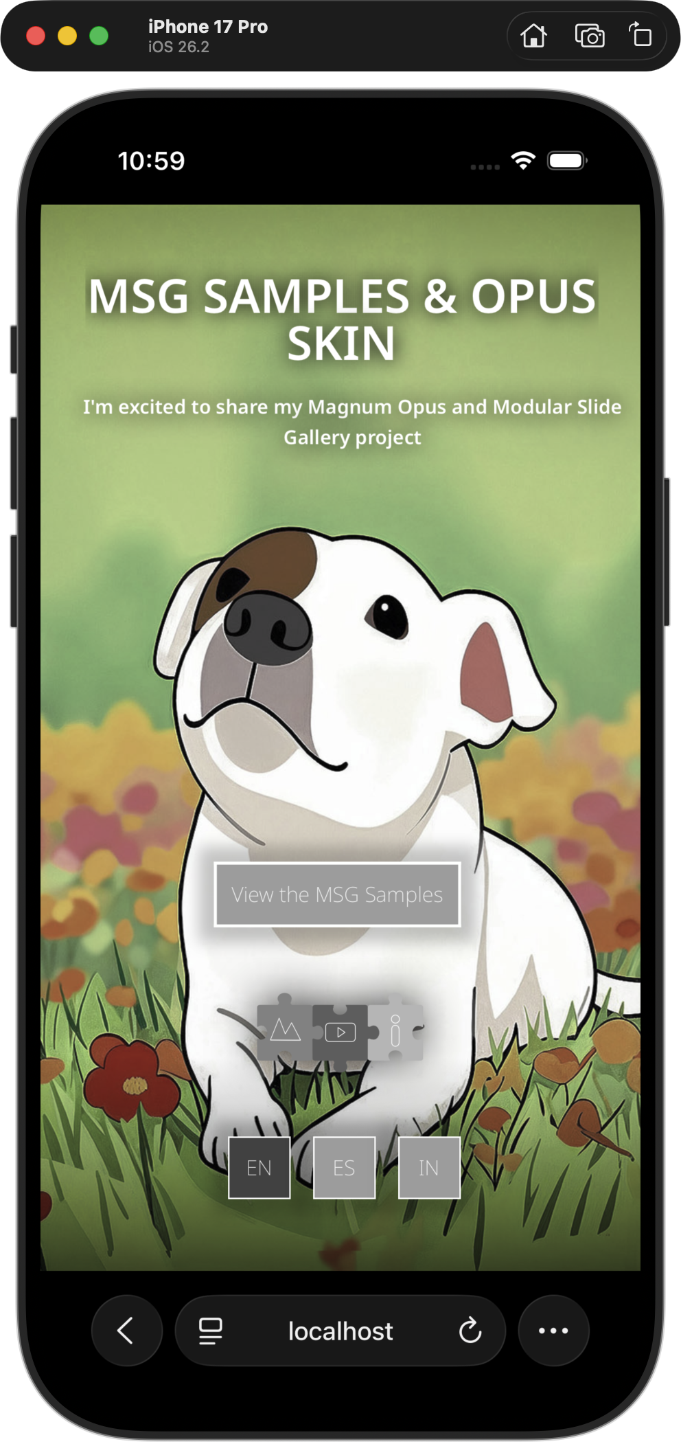 Visibility and attributes of the elements and effects, except the Enter button, are optional and managed via the Edit Skin Configuration window.