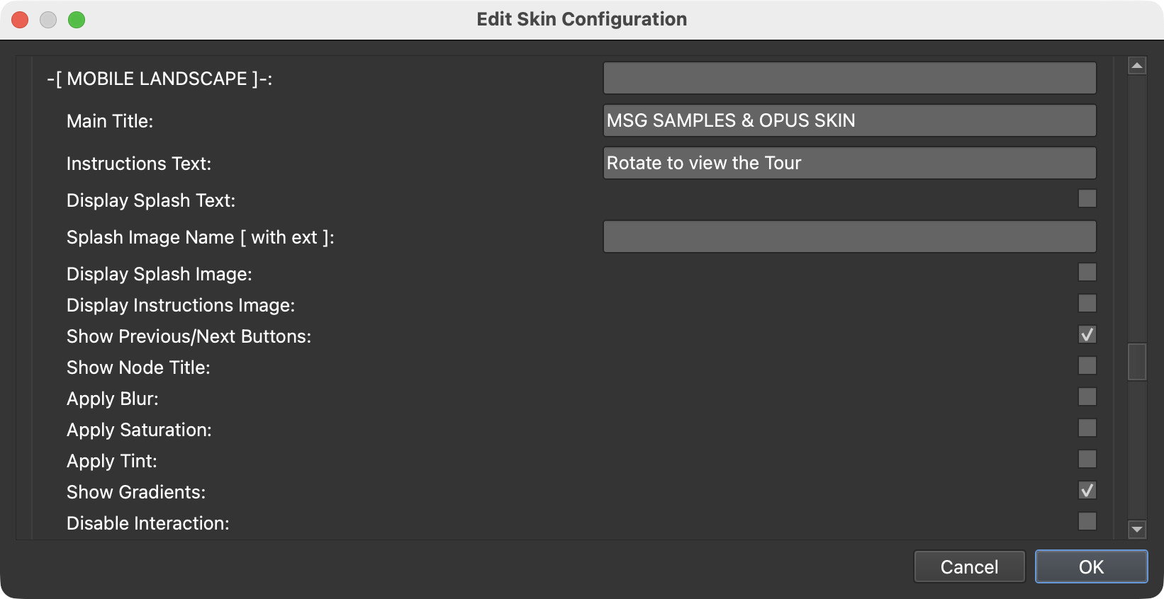 Version B: Fullscreen Image Edit Skin Configuration Mobile Landscape settings