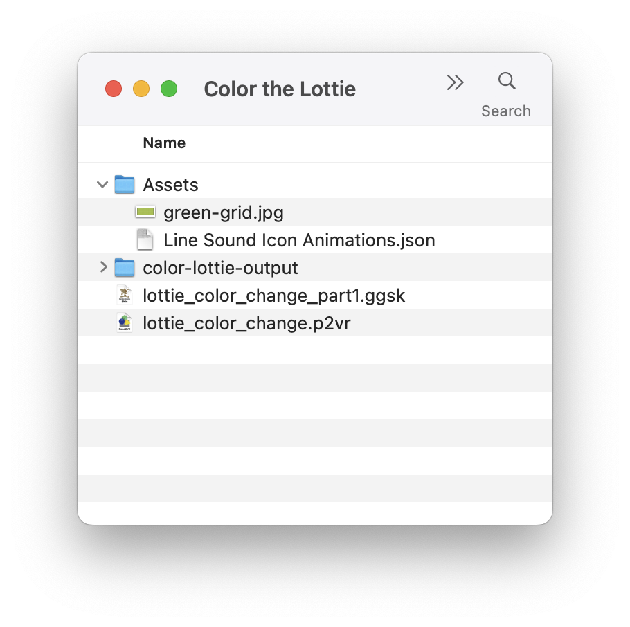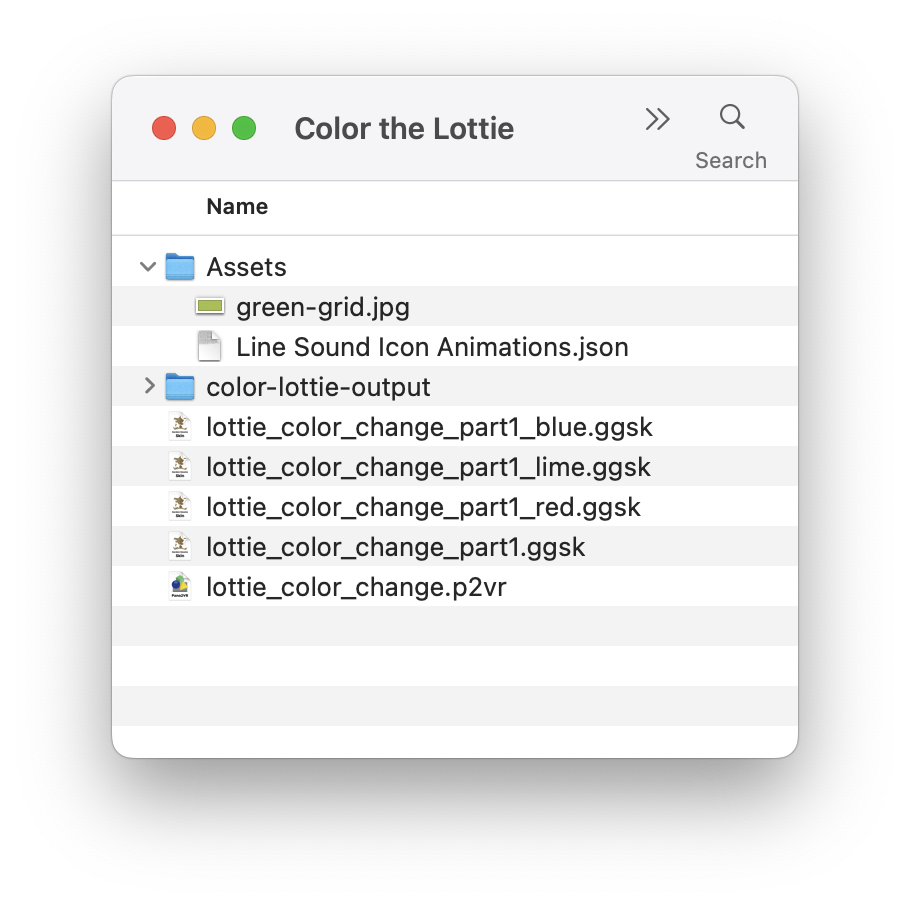 Note: if you are carrying on from the 1st Tutorial it will be lottie_color_change_part1_blue.ggsk, if not, it will be lottie_color_change_part1.ggsk.