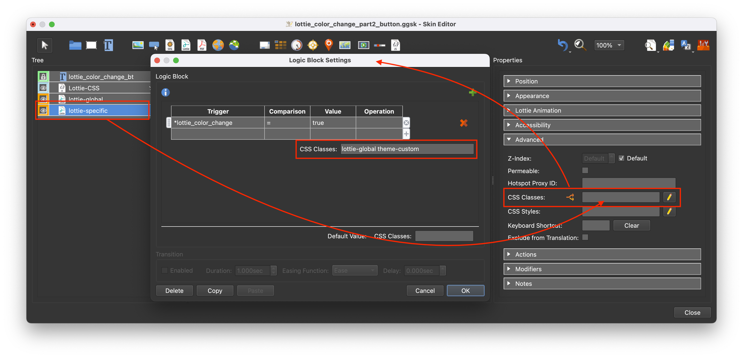 Figure #14: CSS Classes Logic Block for lottie-specific