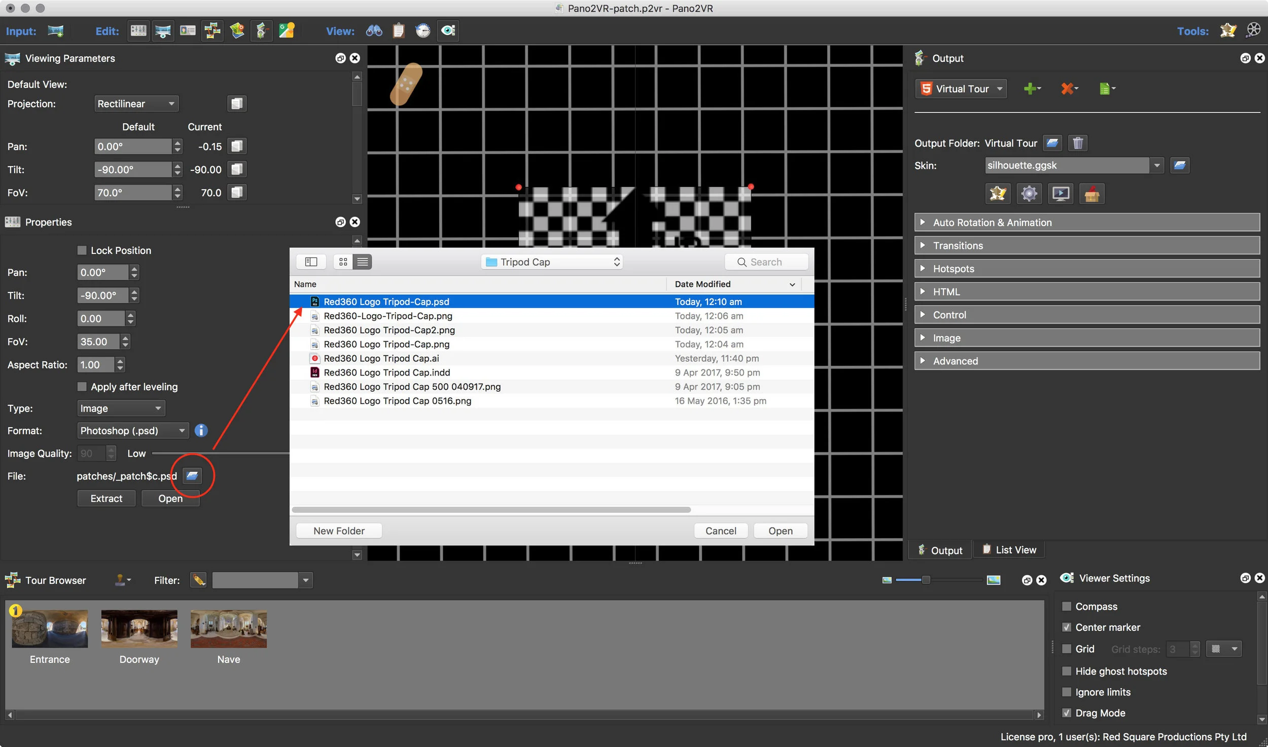 In this tutorial I will show how to create a Tripod Cap that can be applied across several panoramic nodes. In addition, the Tripod Cap, created in Adobe Illustrator and Adobe Photoshop, is editable and changes applied to it will automatically be applied to the patch within Pano2VR.