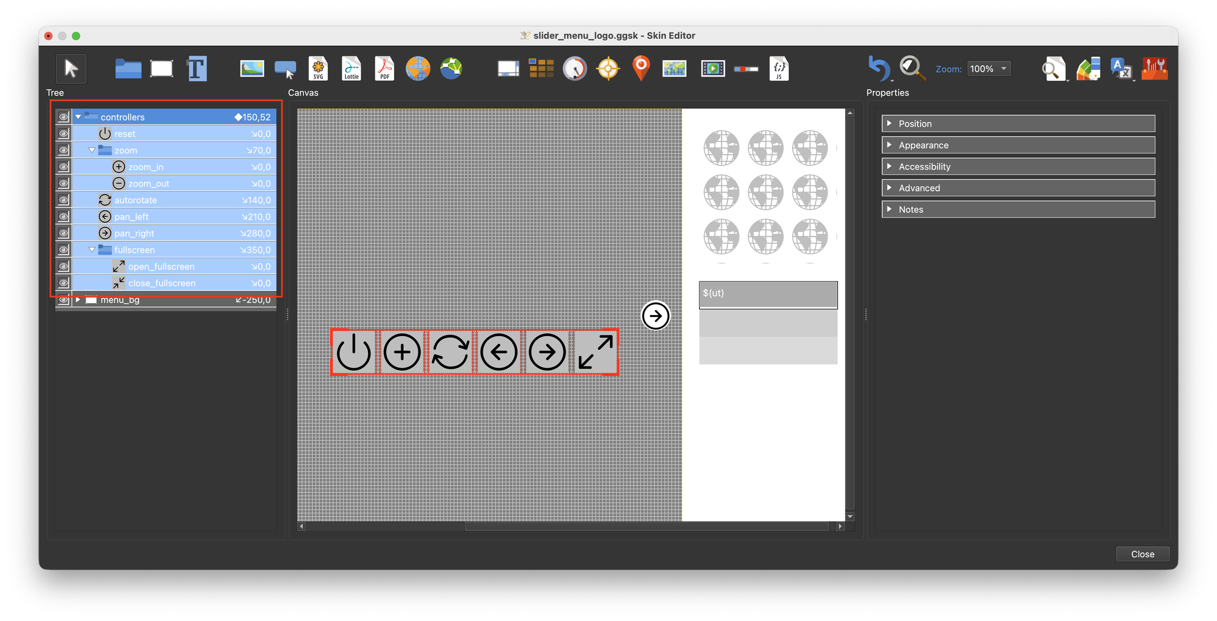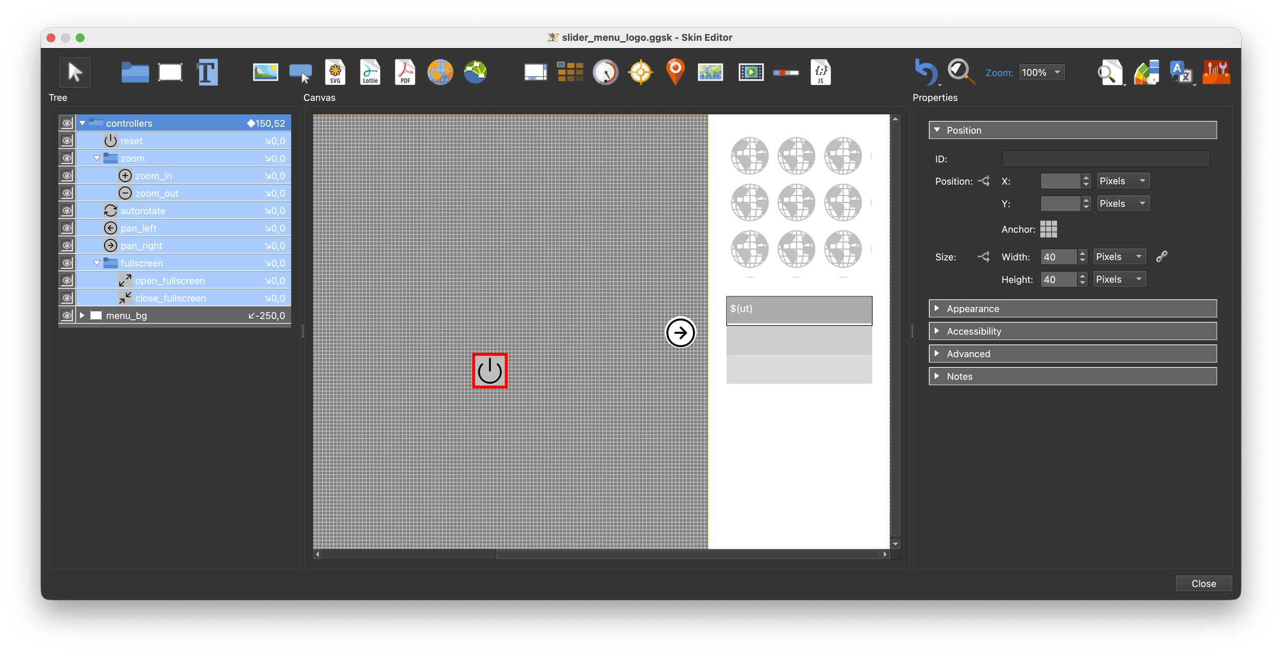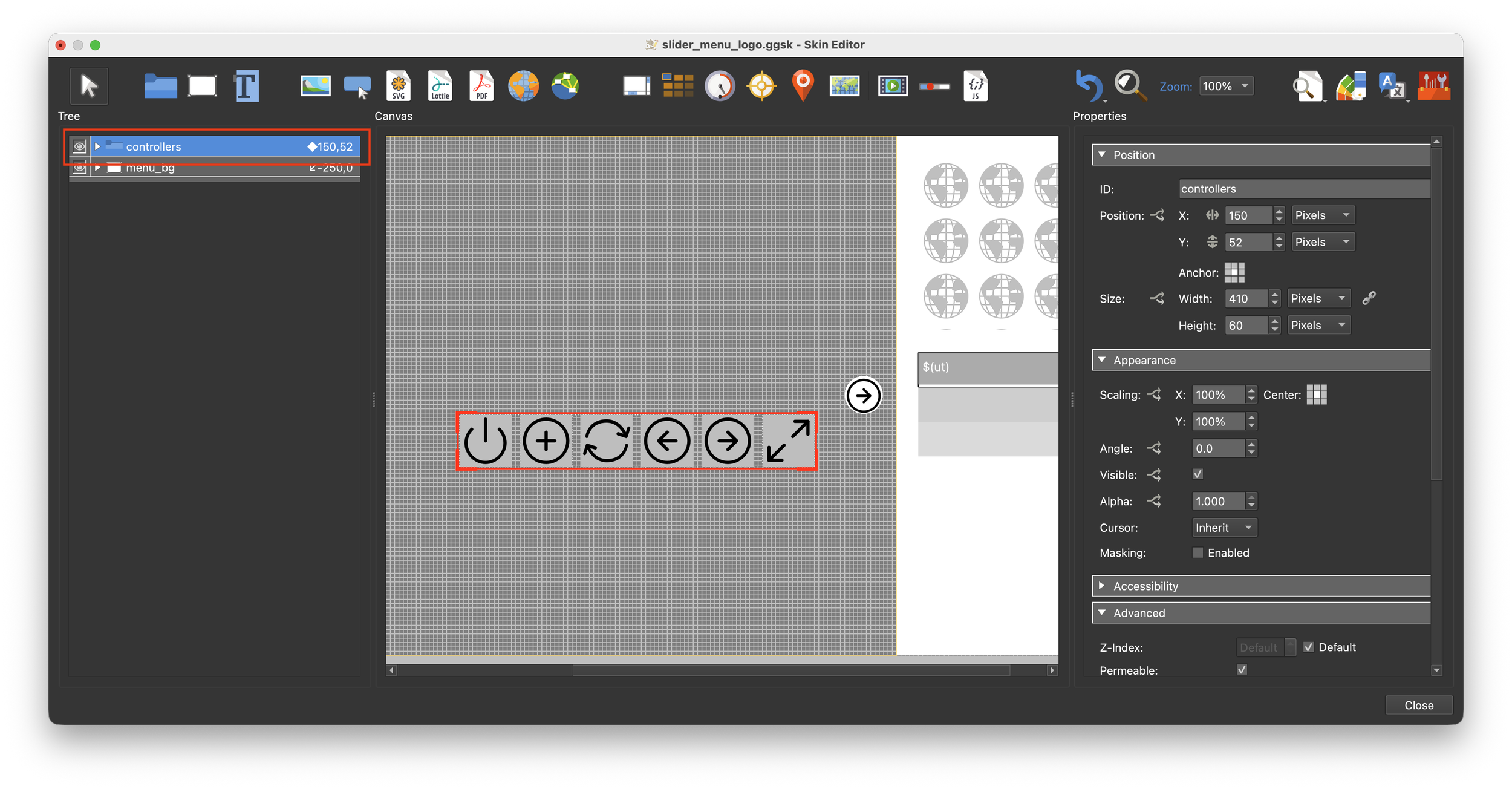 11. Save the skin as slider_menu_controller.ggsk