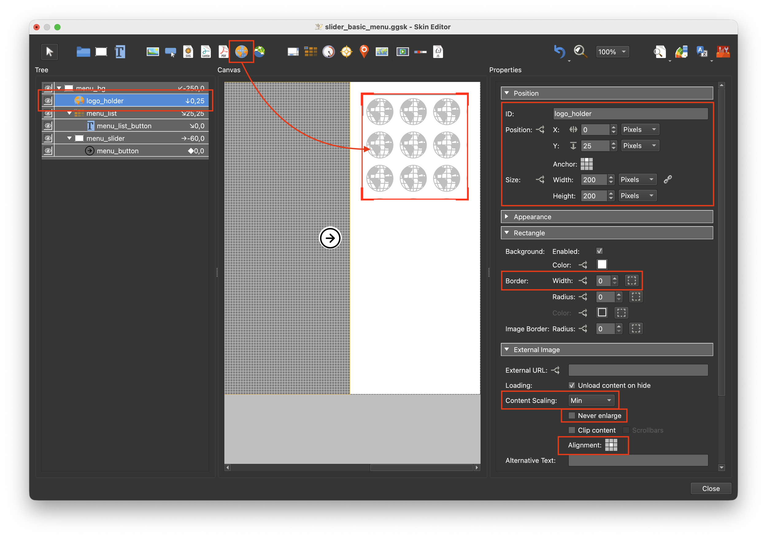 6. Open the slider_menu_logo.ggsk in the Skin Editor