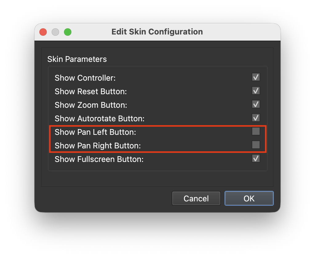For example in the current output we are showing all buttons. Lets say in our next tour we don’t want to show the pan-left/pan-right buttons. We can simply hide them by using the fact that they have been exposed.