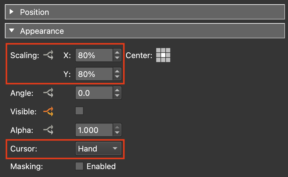 Appearance: Scaling: X: 8o% Y: 80%