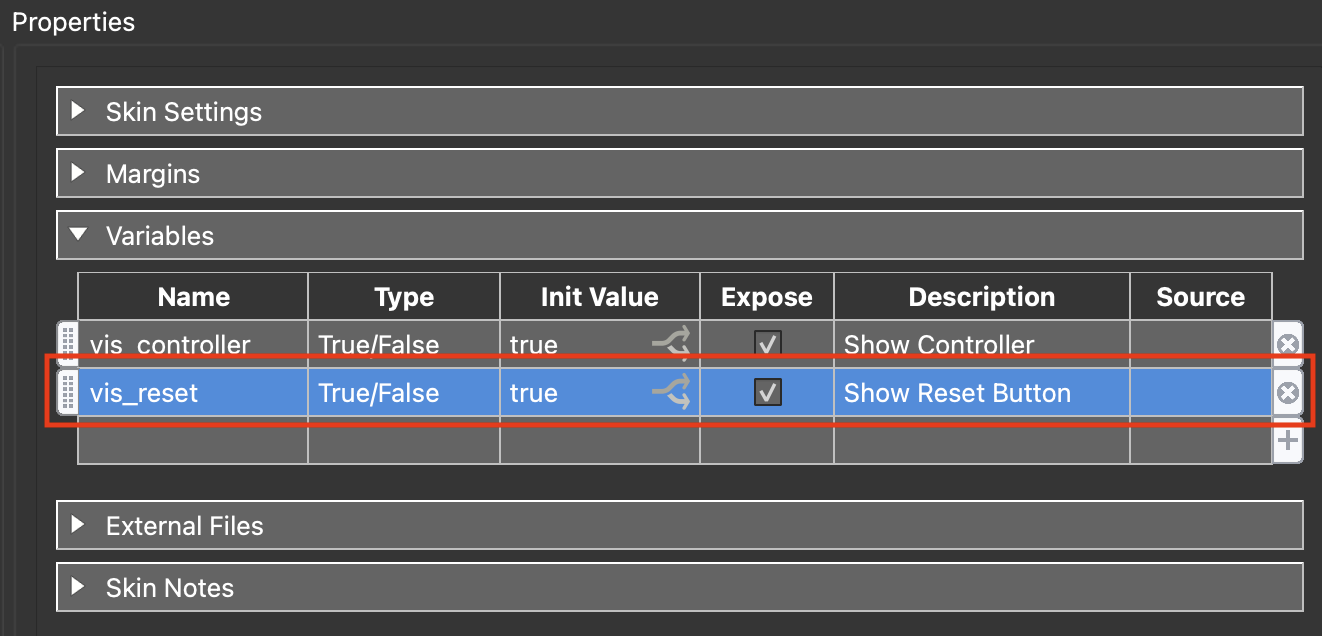 Note: to manage the individual buttons we must add a variable to the skin for each button