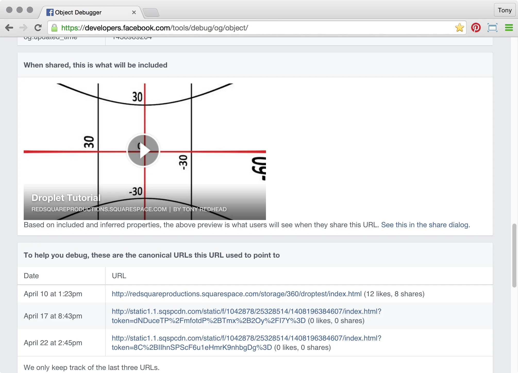 Note: Facebook has a very aggressive caching regime and it can sometimes cause issues when upload content of this kind. Using the debugger page resolves any caching issues.