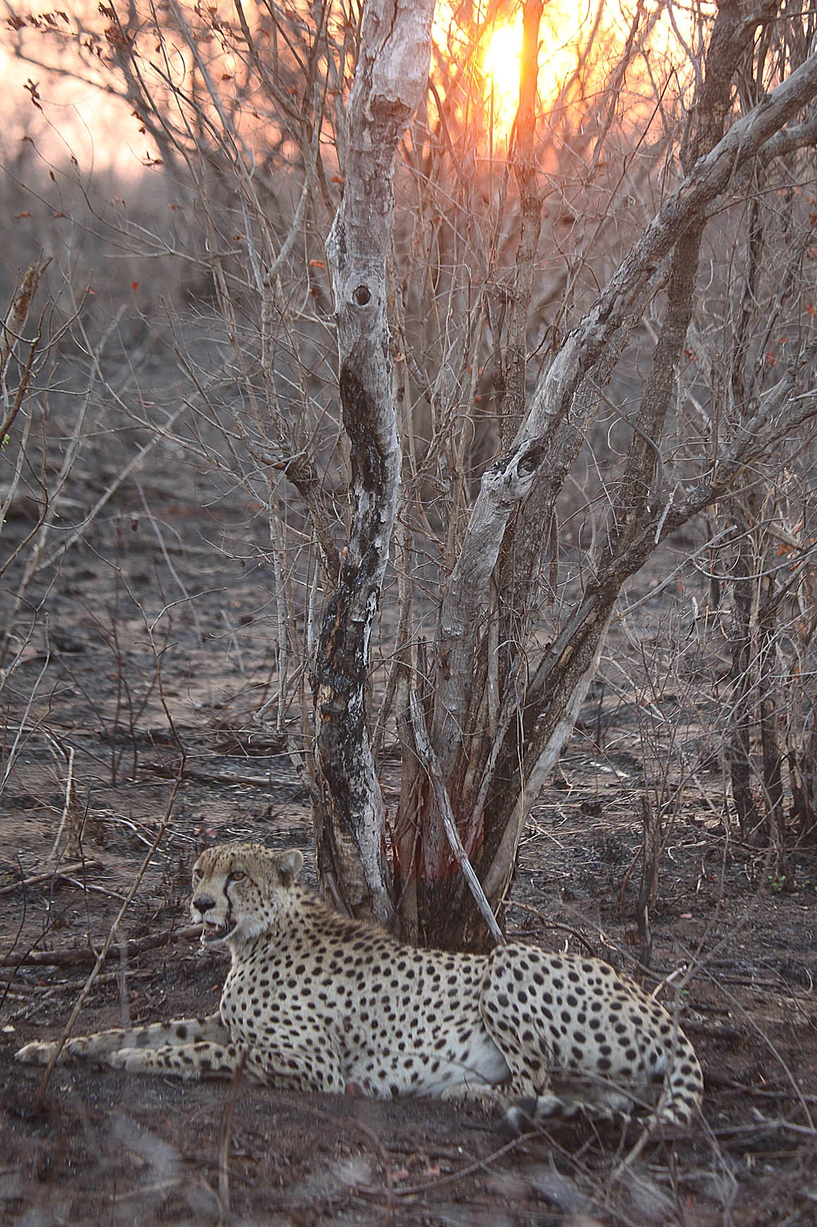 ... and then we found the Cheetah! The Cheetah was resting on a slope not far from the carcass of a pregnant Impala that he'd recently killed. The Impala had a large part of it's rump missing that he'd already eaten but for now he was biding his time and would finish it all later.